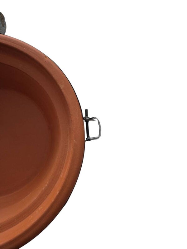 Deze ongeglazuurd ronde tajine is voor het gebruiksgemak voorzien van handvatten en een